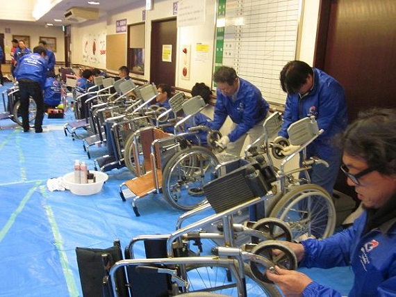 ・AIRオートクラブ香川支部、JSA中核会高松支部、損保ジャパン日本興亜(株)高松支店合同で車いす整備・清掃活動を行いました。