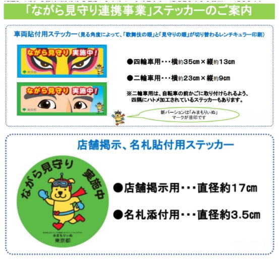会員のみなさまには4種類のステッカーをお配りして店舗の入り口や自転車などに貼っていただき、日頃から子供や高齢者の方々に目配りをする意識付けをしていただくこととなりました。