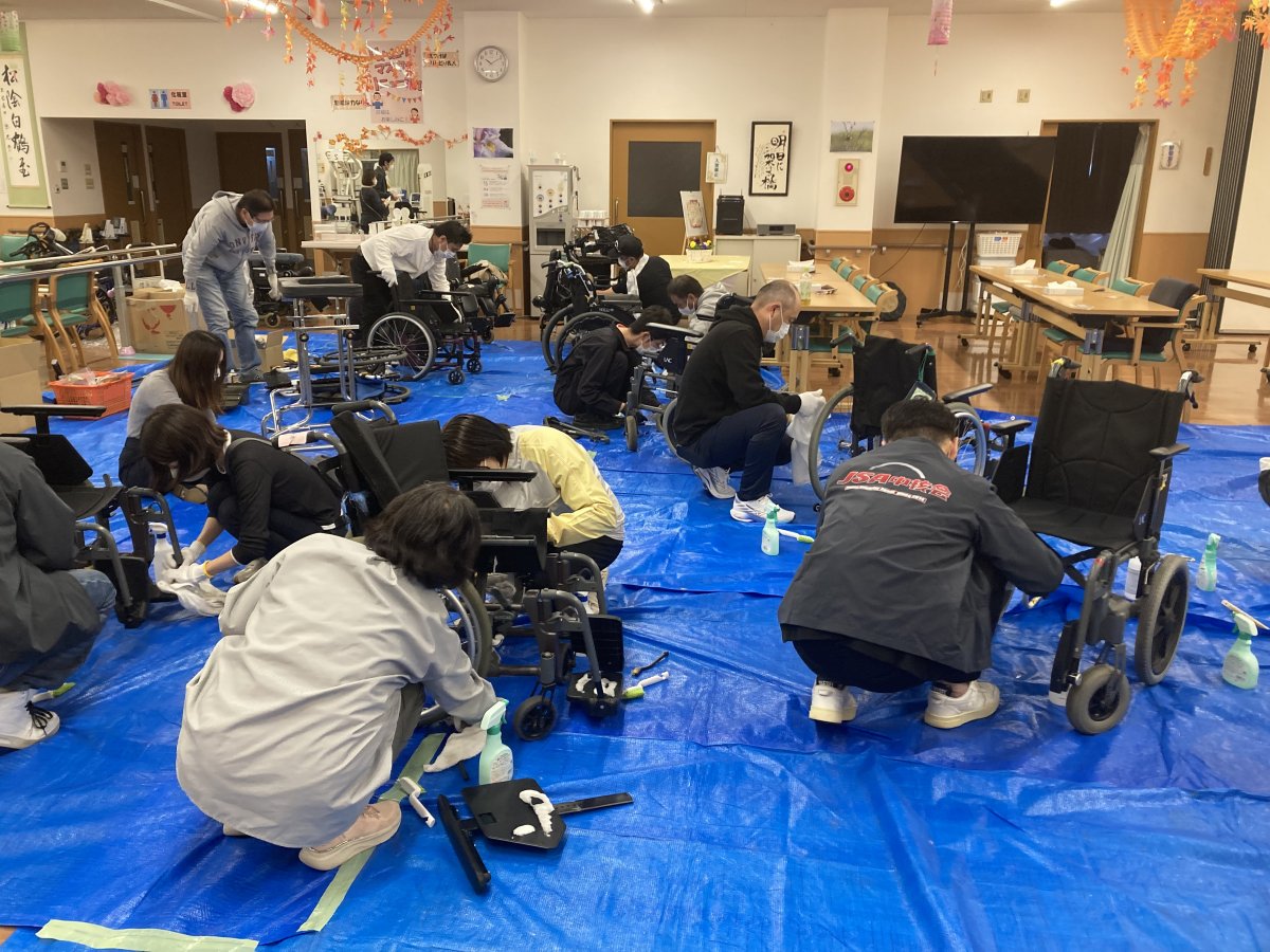 社会貢献活動として毎年車いす整備・清掃活動を行っていますが、今年はJSA中核会と合同で実施しました。