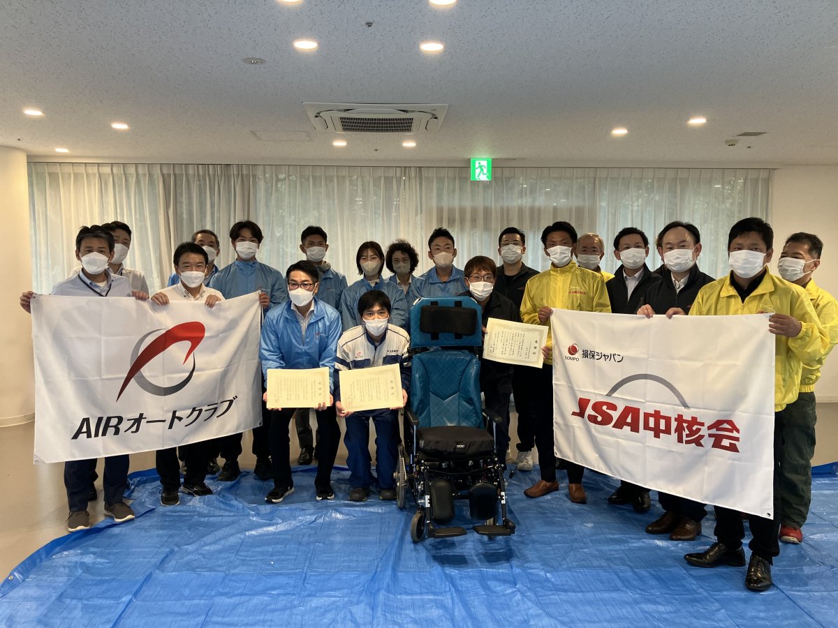 AIRオートクラブ浜松支部の会員のみなさまと損保ジャパンのプロ代理店組織であるJSA中核会浜松支部会員のみなさま、損保ジャパン社員の3者合同で車椅子清掃活動を実施いたしました。
