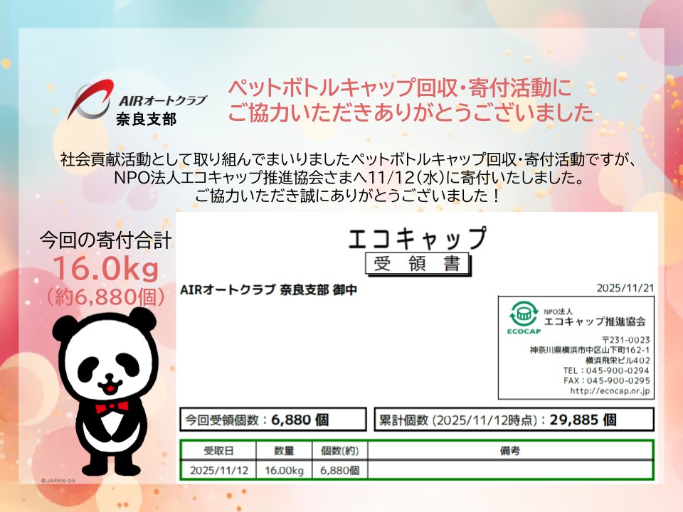 寄付先 :NPO法人エコキャップ推進協会
