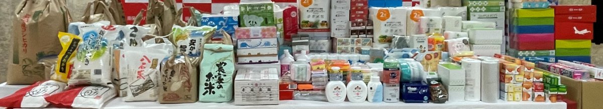 ・お米155㎏ ・ハンドソープ46個 ・ティッシュ270箱 ・ラップ33個 ・アルミホイル30個
