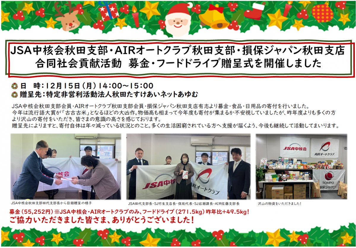 【秋田支部】合同ボランティア 募金・フードドライブ贈呈を行いました