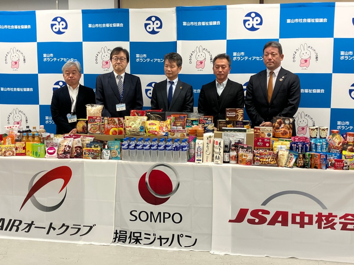 AIRオートクラブ富山支部、JSA中核会富山支部(保険の専業プロ代理店組織),損保ジャパン富山支店の社員合同でフードドライブを実