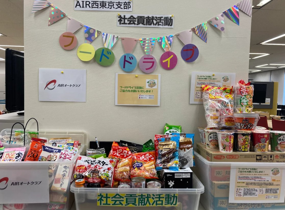 AIRオートクラブ西東京支部では、今年度も社会貢献活動の一環として、11月4日から12月19日にかけて「フードドライブ活動」に取り組みました。